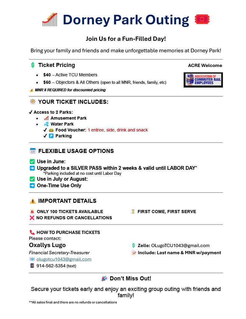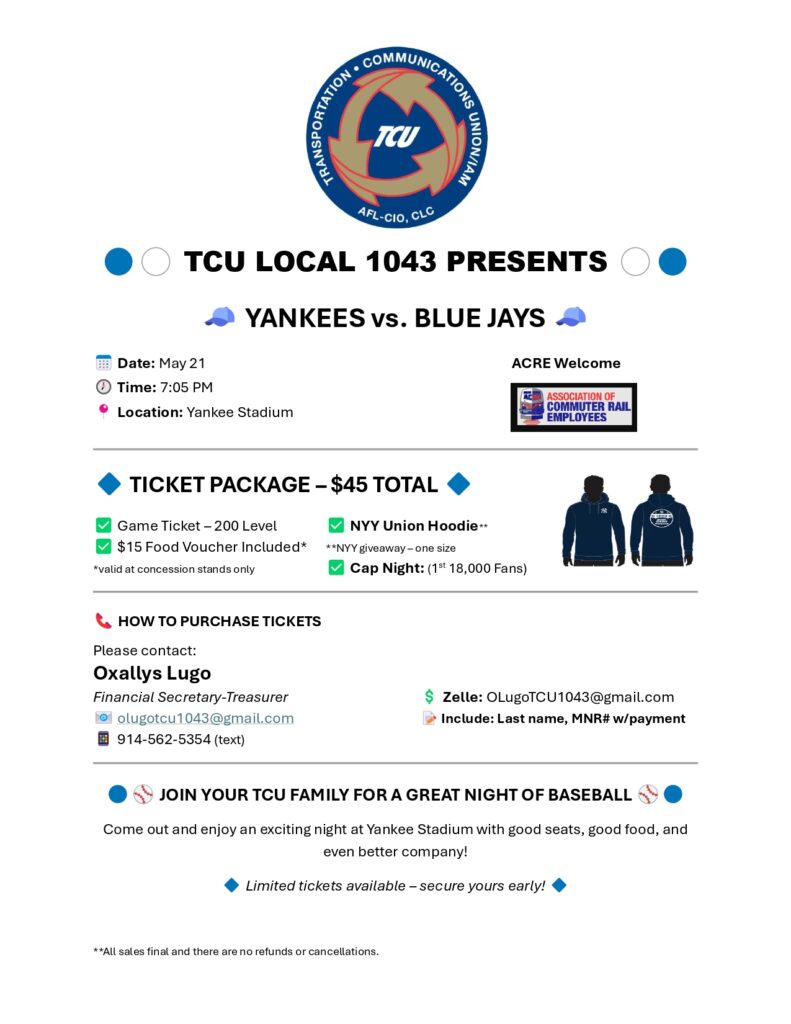 “For more than two years, our members have heard excuse after excuse for why they cannot get a fair contract,” said Nick Peluso, National Vice President of TCU/IAM. “The clock has run out. Our members deserve raises that reflect their vital role in keeping the LIRR running and serving millions of riders. The time for excuses is over.”